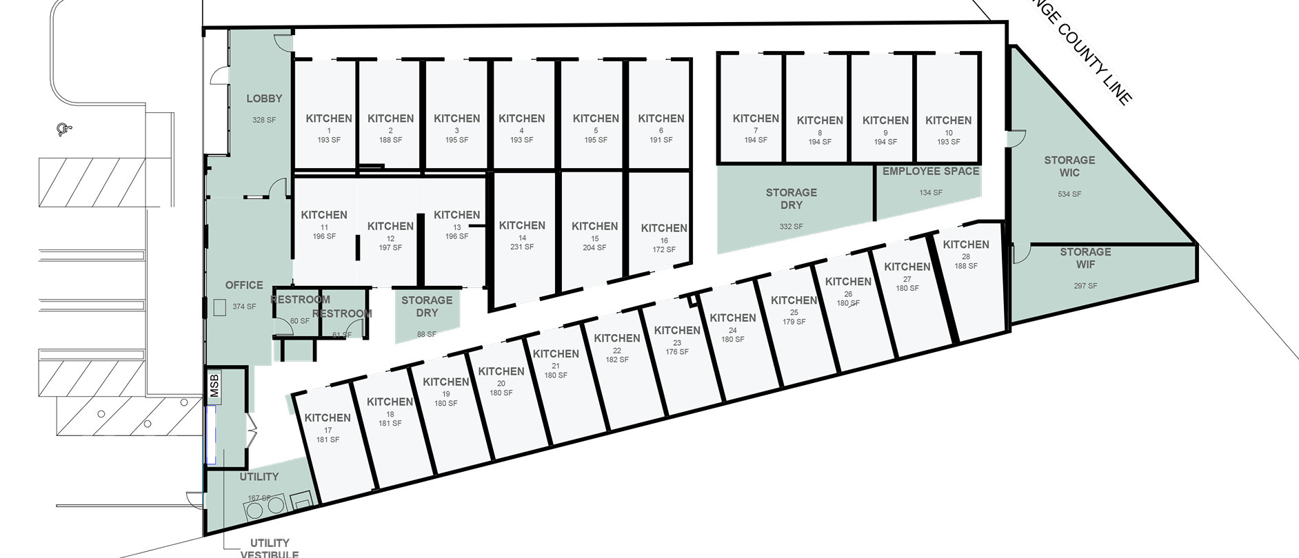 Every kitchen comes with the space, services, and essentials you need to operate.